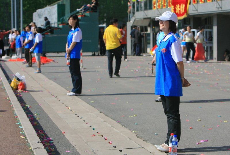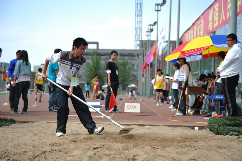 無論是場上拼搏的運動員,還是看臺上狂熱的觀眾,都離不開一群人——運動會志愿者。他們大多是學校志愿者協會的成員,還有一部分是報名參加的。志愿者們總是站在隔離線旁邊,運動會開多久,他們就要站多久,阻止閑雜人員進入比賽場地,維持著場地的秩序。記者從醫療隊處了解到,暈倒的同學中很多都是志愿者。原來,他們中的許多人在今天的運動會上身兼數職:走方陣、采訪、比賽,然而正是因為這樣,換班的時間里他們也得不到充分休息。“本次共出動60名志愿者,個個都是好樣的!”校青志協會長彭興旺贊揚道。