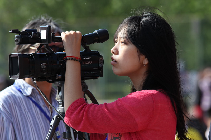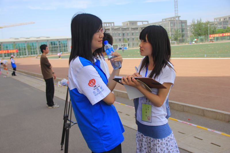 校報的記者和校園電視臺的工作人員也活躍在賽場一線。炎炎烈日下,背著沉重的攝像機、照相機,記者們的汗水灑遍了賽場的每一個角落。校報記者楊逸馨說:“能有機會報道校運會,雖累猶榮!”電視臺主持部的白雪亦笑道:“很忙,很累,很開心。” 據悉,校新聞中心共派出28名記者報道本次運動會。校電視臺出動了6臺攝像機,共有13位同學全程采訪運動會。