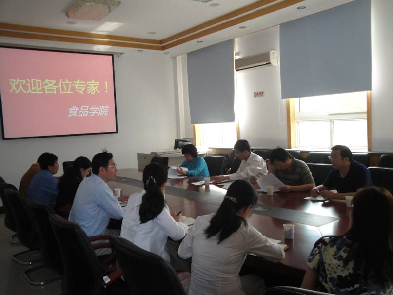 2011年5月17日食品學院召開會議,對新增的“食品質量與安全”專業進行論證。會議特邀中國農業大學食品科學與營養工程學院原副院長姜微波教授、食品質量與安全系主任何計國教授和北京農學院食品科學學院院長賈昌喜教授參加論證。會議由食品科學與工程系主任宋煥祿教授主持。