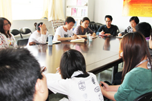 5月13日下午,外國語學(xué)院在阜成路校區(qū)召開了研究生英語教學(xué)學(xué)生座談會。座談會由外國語學(xué)院教學(xué)副院長張衛(wèi)晴主持,外國語學(xué)院黨總支書記閆冀生出席了會議。參會人員就研究生英語學(xué)習(xí)問題、目前開設(shè)的研究生英語課程設(shè)置、教學(xué)內(nèi)容、授課模式、教材使用、考試體系、學(xué)風(fēng)建設(shè)等等方面存在的問題進行了廣泛、深入的探討與交流。