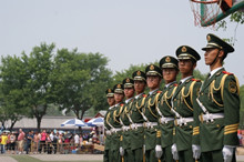 上午九點,師生來到了天安門國旗護衛隊的駐地。盡管天氣炎熱,但大家依舊精神飽滿。國旗護衛隊的官兵對師生的到來表示熱烈的歡迎,并為師生單獨進行了國旗護衛隊隊列展示。挺拔的身姿,矯健的步伐,使大家驚嘆不已,大家紛紛對官兵們艱苦訓練展示出的成果發出由衷地贊嘆和感動。