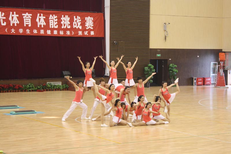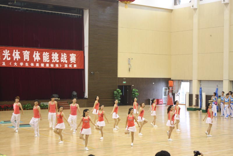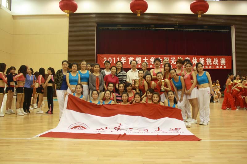 5月28日,2011年首都大學(xué)生陽光體育體能挑戰(zhàn)賽在文體館舉行。來自清華大學(xué)、北京師范大學(xué)、北京工商大學(xué)等15所高校的17支代表隊(duì)參加了包括熱力操、健康標(biāo)準(zhǔn)測(cè)試、及團(tuán)體名次的爭奪。北京市教委體育衛(wèi)生與藝術(shù)教育處處長王東江、北京市大學(xué)生體育協(xié)會(huì)主席杜松彭、北京工商大學(xué)副校長呼文亮、北京市農(nóng)學(xué)院黨委副書記高東、北京工商大學(xué)體育與藝術(shù)部主任顧紅及十幾位參賽院校的體育部主任到場觀看了本次大賽,并為獲獎(jiǎng)團(tuán)體頒獎(jiǎng)。