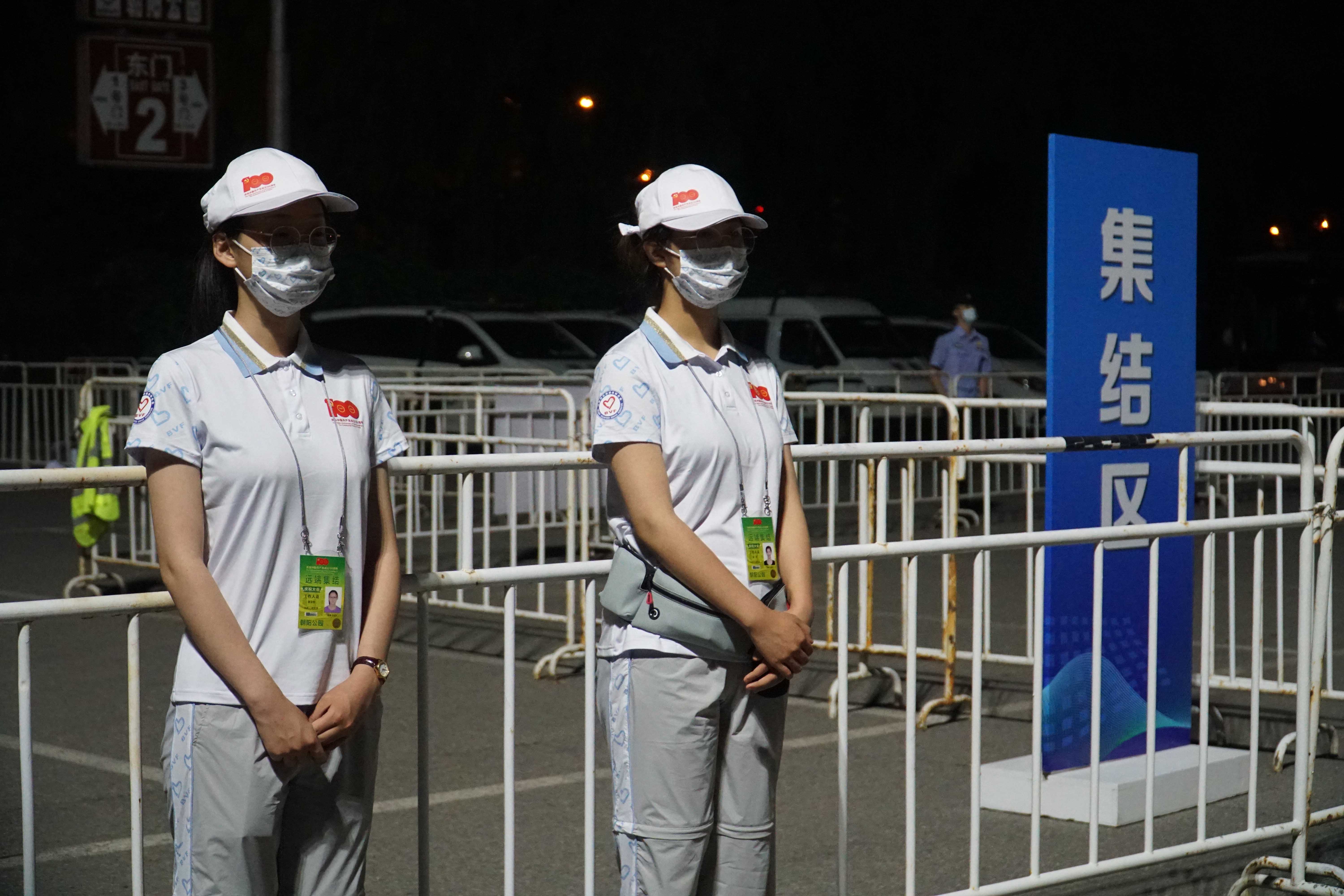 7月1日0點,大家的情緒逐漸激動,身著潔白服飾的志愿者們在黑夜中格外顯眼,大家都在各自的崗位上等待著黎明的到來。