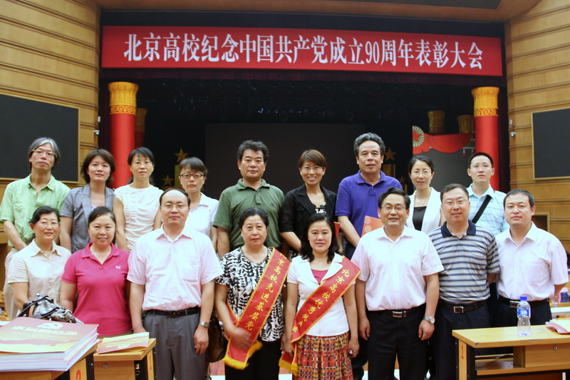 我校“北京高校先進基層黨組織”的文科實踐中心黨支部代表秦艷梅教授、“北京高校優秀共產黨員”廖永紅教授先后與其他獲表彰對象一同登臺亮相,接受表彰,展現風采。