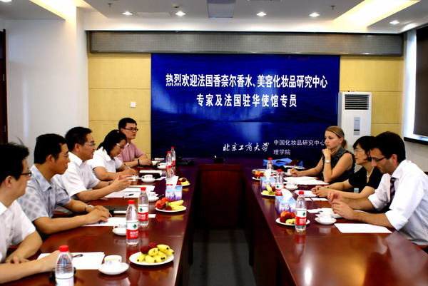 理學(xué)院領(lǐng)導(dǎo)班子和相關(guān)領(lǐng)域的專家會(huì)見了來(lái)賓。理學(xué)院院長(zhǎng)曹顯兵教授向來(lái)賓介紹了學(xué)校的發(fā)展?fàn)顩r及理學(xué)院、中國(guó)化妝品研究中心未來(lái)的發(fā)展前景,表示到2013年將在良鄉(xiāng)校區(qū)建成并投入使用新的理學(xué)大樓,教學(xué)、科研、研發(fā)從硬件方面將有一個(gè)飛躍,檔次也更高。他對(duì)法方專家和科技專員來(lái)訪理學(xué)院表示歡迎,希望今后通過(guò)相互的合作和交流彼此更加了解,特別是在化妝品領(lǐng)域創(chuàng)造更好的發(fā)展和社會(huì)效益。