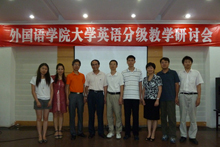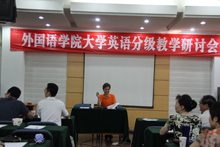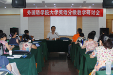 楊懷恩院長主持會議并感謝教務處對研討會的大力支持。教務處副處長祝鈞表示,大學英語分級教學事關學校六千多學生英語水平的提高,教務處非常重視這次研討會,并對學院學科建設發展提出了希望。教務處教學運行科長孫壯介紹了下學期分級教學實際運行操作情況。