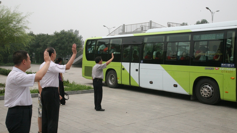 儀式結束后,盧思鋒副書記親自送走了發往各個實踐基地的車輛,向同學們一一揮手道別。緩緩駛離的車輛,載著500余名奔赴實踐的師生,載著學校領導的關心與期望,更承載著大學生服務社會、增長才干的熱情與決心,相信2011暑期社會實踐定能取得豐碩的成果。