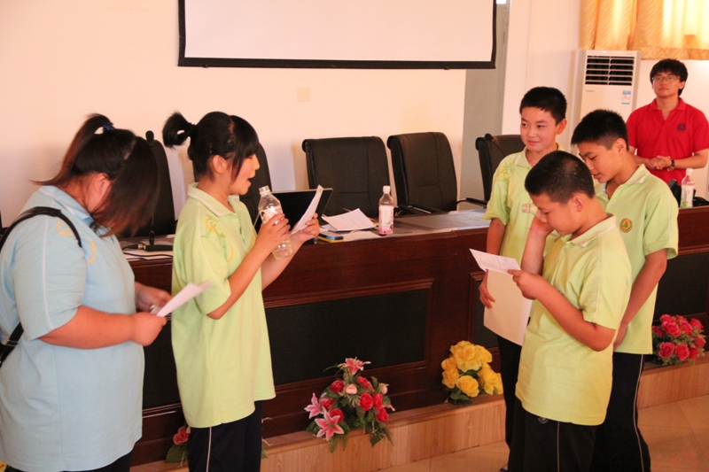授課后,實踐團為孩子們安排了小比賽,由一個班級通過無聲表演反映出一句之話的內容,旨在讓大家領會表演動作的重要性。在經過抽簽選題后,9個班級依次上臺表演,現場歡笑聲不斷。最終,評委們評判3班為比賽的第一名,每位成員也都得到了精美的小獎品。