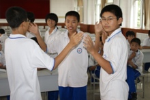此外,上午的安全知識培訓(xùn)也非常有趣。理學(xué)院實(shí)踐分團(tuán)的“小老師”親自上臺演示。南召中學(xué)的同學(xué)被老師們吸引,便積極舉手也要做演示。大家其樂融融。