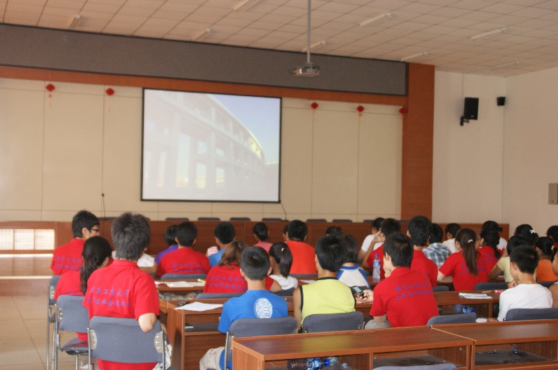 8點半,課程以一段優美的視頻展開了。負責人石曉薇同學在課余時間收集了大家的照片,制作了這個精美的視頻。我們的大學:有彷徨,有思考;有迷惘,有求知;有過一時的悲傷,有過太多的歡樂;結交朋友,參加學系和社團;組織班級活動,參與學校晚會。我們向孩子們呈現的不只是一種生活,而且是一種對生活的追求。大學的生活是自由的,相比以前的課堂沒有那么死板和刻意,但是需要學生絕對的自覺性。孩子們看得很入神,尤其是看到自己的老師時,興奮地和我們攀談對于我們美麗的校園,孩子們無不驚嘆,眼睛里流露出一種向往的快樂。此時,我們只覺得足夠。能夠給孩子們帶來這些新鮮的事物,豐富他們的暑假,已然很美。課堂討論后我們還一起進行了搶椅子的經典游戲,孩子們顯得很興奮,我們在旁看著更是覺得特別幸福。經過幾天的接觸,我們已經把他們當做我們的朋友。記得有位老師曾跟我感慨:每次看他們上臺,或者回答問題,都好期待,就是一種望子成龍的感覺,這種感覺來的太真切太美妙了。是啊,同學們此刻滿意的笑臉,就是我們追尋的結果。