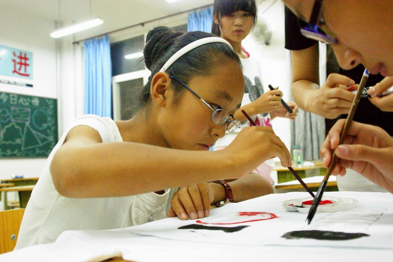 在短暫卻不平凡的幾天內,經濟學院的成員們滿懷信心,為孩子們送去了熱情周到的服務和精彩有趣的課程。今天,為更好地培養孩子們的動手能力和創造力,成員們開展了與孩子一起繪制文化衫的活動。孩子們在老師的指引下,積極拿起手中的畫筆用心繪制;還有的孩子活學活用,將京劇文化課上學到的臉譜繪畫展現了出來。當原本空白的衣服上出現一個個有生命的圖案時,心手相連的我們一同露出滿足的笑容。孩子們用稚嫩的畫筆描繪出對祖國的一片熱愛,繽紛了夢想和希望。