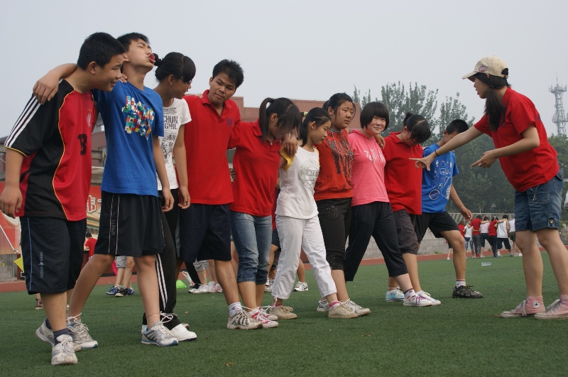 昨夜的雨絲毫沒(méi)有打消我們運(yùn)動(dòng)的積極性,同學(xué)們?cè)缭绲貋?lái)到了操場(chǎng),躍躍欲試。我們?cè)谶\(yùn)動(dòng)會(huì)中進(jìn)行了四個(gè)有趣的集體項(xiàng)目。每個(gè)活動(dòng)都凝聚了團(tuán)隊(duì)的集體智慧。“十人十一足”讓大家的默契度達(dá)到了最高點(diǎn)。“乒乓球接力”讓大家明白速度不是最重要的,有時(shí)候短暫的停留會(huì)讓事情發(fā)展得更加平穩(wěn)順利。“無(wú)敵的風(fēng)火輪”讓大家匯集彼此的智慧制造出了一個(gè)又一個(gè)形態(tài)各異的風(fēng)火輪,踩著風(fēng)火輪每個(gè)隊(duì)伍到達(dá)了終點(diǎn)。“雷區(qū)取水”讓大家打破了各個(gè)分組的概念,一個(gè)組出創(chuàng)意,其他組的人來(lái)幫忙,每個(gè)人都很賣(mài)力,這讓學(xué)生們感受到了互幫互助的重要性。