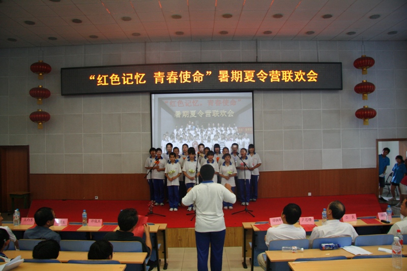 隨后,慰問團來到良鄉五中,觀看了材料與機械工程學院實踐分團的同學們與良鄉五中的學生們一起編排的演出。精彩的節目贏得了在座領導和師生的陣陣掌聲。在演出的最后,在座領導和全體師生起立合唱了紅歌《沒有共產黨就沒有新中國》。盧思鋒副書記對同學們的實踐成果加以肯定,并要求同學們要通過社會實踐活動達到“受教育,長才干,做貢獻”的目的。慰問團還參觀了實踐分團同學的食堂,對同學們的生活情況進行了了解和關懷。