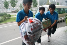 慰問團還為各實踐分團帶去了西瓜和桃子等慰問品,為同學們解暑降溫。同時,慰問團還給各實踐分團所駐各中學的孩子們贈送了文具用品。