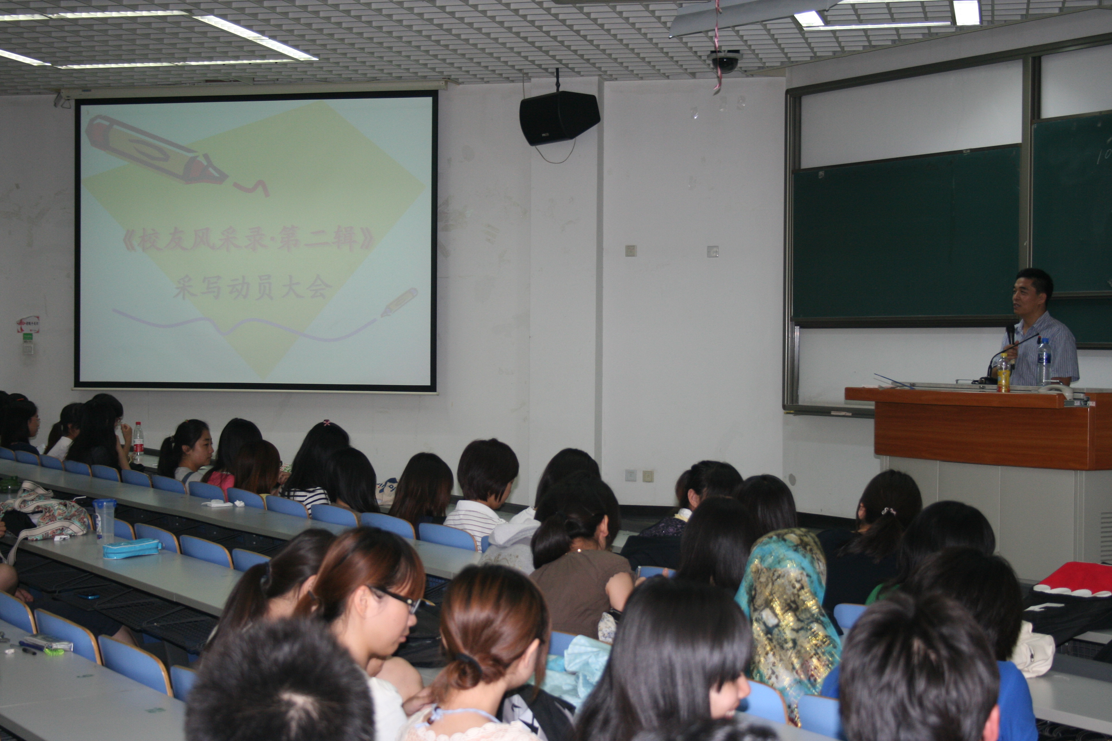 為更好的展現(xiàn)學(xué)校風(fēng)采、進(jìn)一步加強(qiáng)和校友之間的溝通和交流,學(xué)校校友會組織編寫《校友風(fēng)采錄》,第一輯于2010年順利出版,在校慶時期成功展示了我校校友風(fēng)采,受到了廣泛的好評。為使《校友風(fēng)采錄》(第二輯)的采寫工作采寫工作順利開展,6月10日學(xué)校黨委副書記盧思鋒召集、校友會和藝術(shù)與傳媒學(xué)院負(fù)責(zé)人對編寫工作進(jìn)行了部署。7月6日,《北京工商大學(xué)校友風(fēng)采錄》(第二輯)采訪動員大會在我校良鄉(xiāng)校區(qū)召開。校友會秘書長張曉磊在會上進(jìn)行了業(yè)務(wù)指導(dǎo),指出編寫《校友風(fēng)采錄》的具有三個方面意義,首先是校友是學(xué)校流動的名片,記錄他們的成功能給我校師生以啟迪;其次,校友是我校最寶貴的資源,他們不僅為在校學(xué)生傳授經(jīng)驗(yàn),還為學(xué)校提供各種幫助;第三,09級新聞系的同學(xué)在這次采訪中不僅是記者更是學(xué)校的名片,向校友們介紹學(xué)校的發(fā)展。藝傳學(xué)院副書記楊艷萍在會上作了總結(jié),她希望09級的同學(xué)能接過08級同學(xué)的接力棒,為學(xué)弟學(xué)妹們做出榜樣。校友會副秘書長王嘉彥、新聞系主任王擎也分別在會上進(jìn)行了安全教育、采寫要求等具體安排說明。