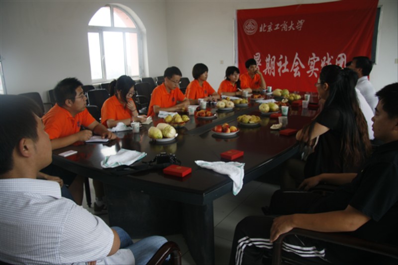 之后,永安鎮鎮長王艷輝對服務團的成員們表示了歡迎,并且介紹了永安鎮的基本情況。他表示,很歡迎服務團的老師和同學來到永安鎮;相信經過此次實踐,同學們將收獲很多,在將來建言獻策的時候能夠將新農村發展作為一個大方向。