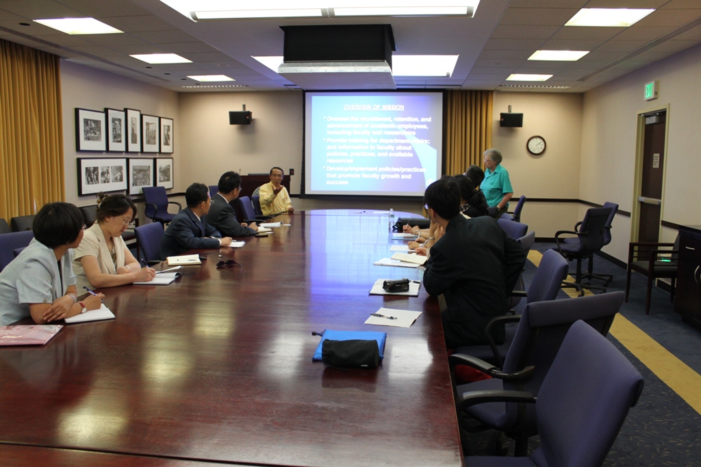 美國(guó)當(dāng)?shù)貢r(shí)間8月4日,我校學(xué)科帶頭人赴美培訓(xùn)團(tuán)為期20天的培訓(xùn)正式開(kāi)班。加州大學(xué)戴維斯分校(UC Davis)非常重視,熱情接待,第一堂課就由副校長(zhǎng)兼教務(wù)長(zhǎng)芭芭拉•霍爾威茨(Barbara Horwitz)教授親自授課,主題是戴維斯分校的學(xué)科帶頭人隊(duì)伍的引進(jìn)、管理和發(fā)展。芭芭拉副校長(zhǎng)詳盡介紹了戴維斯分校乃至整個(gè)加州大學(xué)的人才引進(jìn)機(jī)制和不同層級(jí)教師的考核方式,以及學(xué)校以人為本的用人理念。