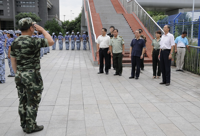 9月1日,新生軍訓進入第五天。校黨委書記孫堯東,黨委副書記盧思鋒,黨委副書記、紀委書記張德玉,軍訓團團長張義中校,在學校相關部門領導的陪同下視察了新生的軍訓情況。