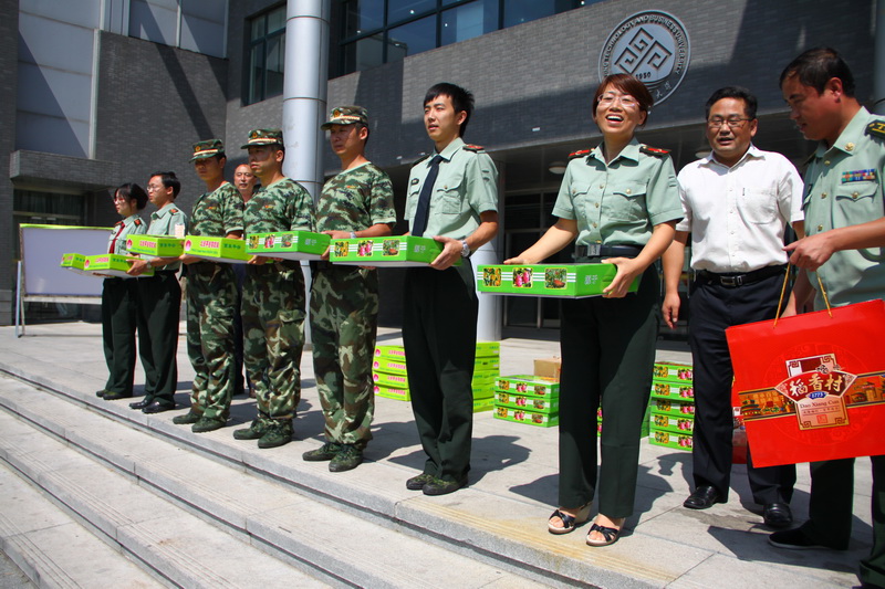 9月2日,黨委副書記盧思鋒,黨委副書記、紀(jì)委書記、工會(huì)主席張德玉代表學(xué)校黨委和行政來(lái)到良鄉(xiāng)校區(qū),親切慰問了在新生軍訓(xùn)中不辭辛苦的軍訓(xùn)團(tuán)老師和官兵們,為他們送去品月餅、水果和節(jié)日的祝福。