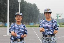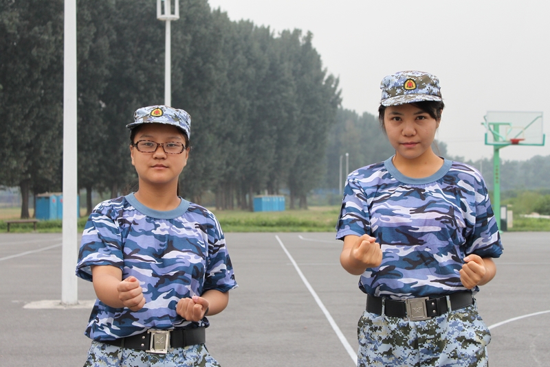 而對于王藝菲來說,她的“擒敵”之路更加艱難。王藝菲并不是肢體協調能力很強的女生,記動作也有些慢,在選擒敵方陣前的一整個中午,她都在努力地練習,一遍一遍地記動作,并請打得好的同學幫忙指導。最終皇天不負有心人,她和好姐妹張磊一起入選了擒敵方隊。“以前軍訓,自己總是得過且過,累得堅持不了時,總會想到向教官打報告休息一下。但現在身為副班長,時時刻刻都感覺到身上擔負著重大的責任。在累到不行時,我會立馬告誡自己要堅持再堅持,只能做最后一個倒下的兵。”王藝菲認真地說。