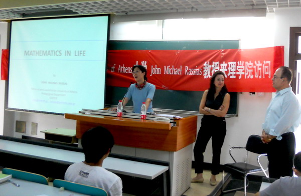 9月20日和21日下午,希臘數(shù)學(xué)家John Michael Rassias 和Vasso 來(lái)理學(xué)院講學(xué),在良鄉(xiāng)校區(qū)為理學(xué)院師生做了精彩報(bào)告,題目分別為 “The exterior Bitsapze-Ravrentjev problem for quarter elliptic-quarter hyperbolic equations in a double connected domain”和 “Mathematics in life”,陪同而來(lái)的北師大數(shù)學(xué)學(xué)院鄧冠鐵教授也為理學(xué)院的師生介紹了關(guān)于概率論與函數(shù)論相結(jié)合的最新科研成果。