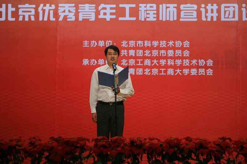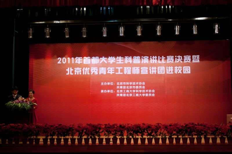 9月24日上午,2011年首都大學(xué)生科普演講比賽決賽暨北京優(yōu)秀青年工程師進校園活動在北京工商大學(xué)隆重舉行。活動由北京市科學(xué)技術(shù)協(xié)會、共青團北京市委員會共同主辦,北京工商大學(xué)科學(xué)技術(shù)協(xié)會與共青團北京工商大學(xué)委員會承辦。中國科協(xié)發(fā)展研究中心主任調(diào)研宣傳部副部長王康友,北京市科協(xié)科普部副部長姚儀鸞,共青團北京市委員會大學(xué)部副部長張賀鋒,北京科技咨詢中心副主任何素興,中國工程院院士、北京工商大學(xué)副校長孫寶國,北京工商大學(xué)副校長謝志華、李朝鮮、方德英出席了本次演講比賽。