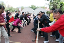 在各分工會(huì)的認(rèn)真組織下,廣大教職工踴躍參加,現(xiàn)場(chǎng)笑聲歡呼聲不斷。隨著比賽的進(jìn)行,賽場(chǎng)上的氣氛愈加濃烈。沙包攻壘、集體跳繩等項(xiàng)目,大家玩的不亦樂乎,重新體會(huì)到了小時(shí)候那種簡(jiǎn)單的快樂;齊心顛球、混合接力和巧接足球等項(xiàng)目,讓大家在尋找默契的同時(shí)感受到了團(tuán)結(jié)協(xié)助的力量;最激動(dòng)人心的場(chǎng)面還是拔河比賽現(xiàn)場(chǎng),哨音響起,雙方隊(duì)員都卯足了勁向自己方向拽繩,耳邊伴隨著拉拉隊(duì)員的口號(hào)“一、二,一、二,加、油,加、油……”,繩子上紅標(biāo)的每一次移動(dòng)都扣人心弦,讓大家深刻體會(huì)到了“堅(jiān)持就是勝利”的真諦,如圖書館分工會(huì)與材料與機(jī)械工程學(xué)院分工會(huì)一場(chǎng)比賽就持續(xù)了近3分鐘。
