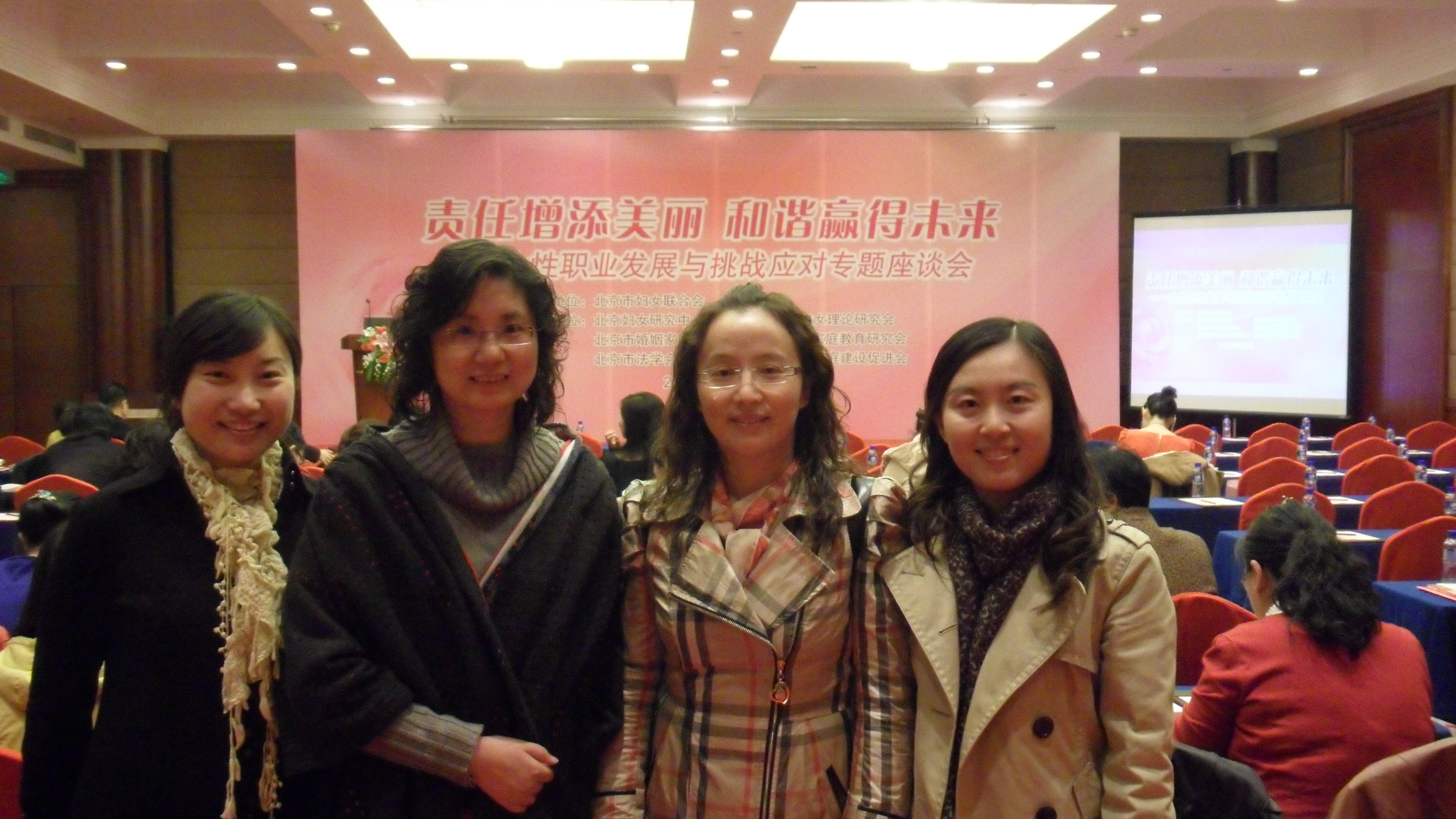 10月28日,北京市婦聯舉辦了“責任增添美麗,和諧贏得未來--女性職業發展與挑戰應對”專題座談會,各區縣婦聯、市婦聯研究機構專家、市婦聯各女性團體以及各高校參與本次活動的代表參加此次會議,校工會副主席、我校女教授協會會長郭馨梅帶領本此論文提交者參加會議。
