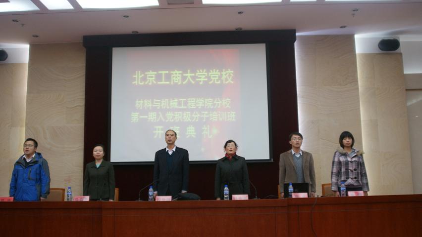 11月1日晚,北京工商大學黨校材料與機械工程學院分校第一期入黨積極分子培訓班開班典禮在良鄉校區舉行。出席此次典禮的有學校黨委副書記盧思鋒、學院黨總支書記呂東燕、學院黨總支副書記馬春暉及學院輔導員等。