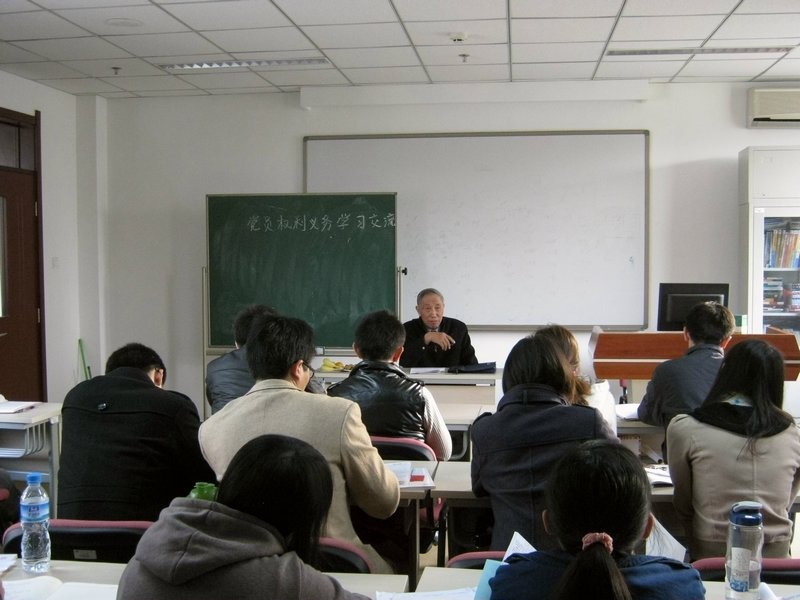 老黨員同志首先向大家生動講述了自己當年入黨的心路歷程以及幾十年來伴隨中國共產(chǎn)黨的發(fā)展壯大,經(jīng)歷過的風風雨雨。從他們樸實的敘述中,同學們深深感受到了老黨員對祖國的責任感和對黨的忠誠之心。然后,老黨員們帶領(lǐng)積極分子們一起學習了黨章中關(guān)于黨員的權(quán)利和義務的規(guī)定,使大家對中國共產(chǎn)黨黨員這個光榮的稱謂有了更加深刻的認識。要成為一名真正合格的共產(chǎn)黨員,不僅要明白黨員的權(quán)利和義務,更要不折不扣地踐行;不僅要樹立共產(chǎn)主義偉大理想,保證對黨和人民的忠誠,更要將全心全意為人民服務作為一切行動的根本指針,學會如何更好地履行黨員的義務,行使黨員的權(quán)利。同時,老同志們還對積極分子們提出了殷殷的期望,希望大家能夠認真學習黨的基本理論知識,經(jīng)受考驗,全心全意為人民服務,早日成為一名合格的共產(chǎn)主義戰(zhàn)士。