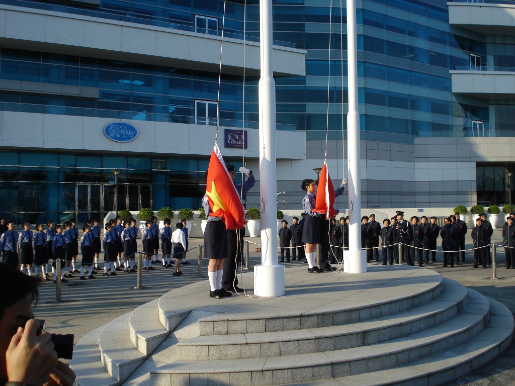 香港會(huì)展中心廣場(chǎng)升旗儀式 香港科技大學(xué)全貌——臨海處是學(xué)生公寓