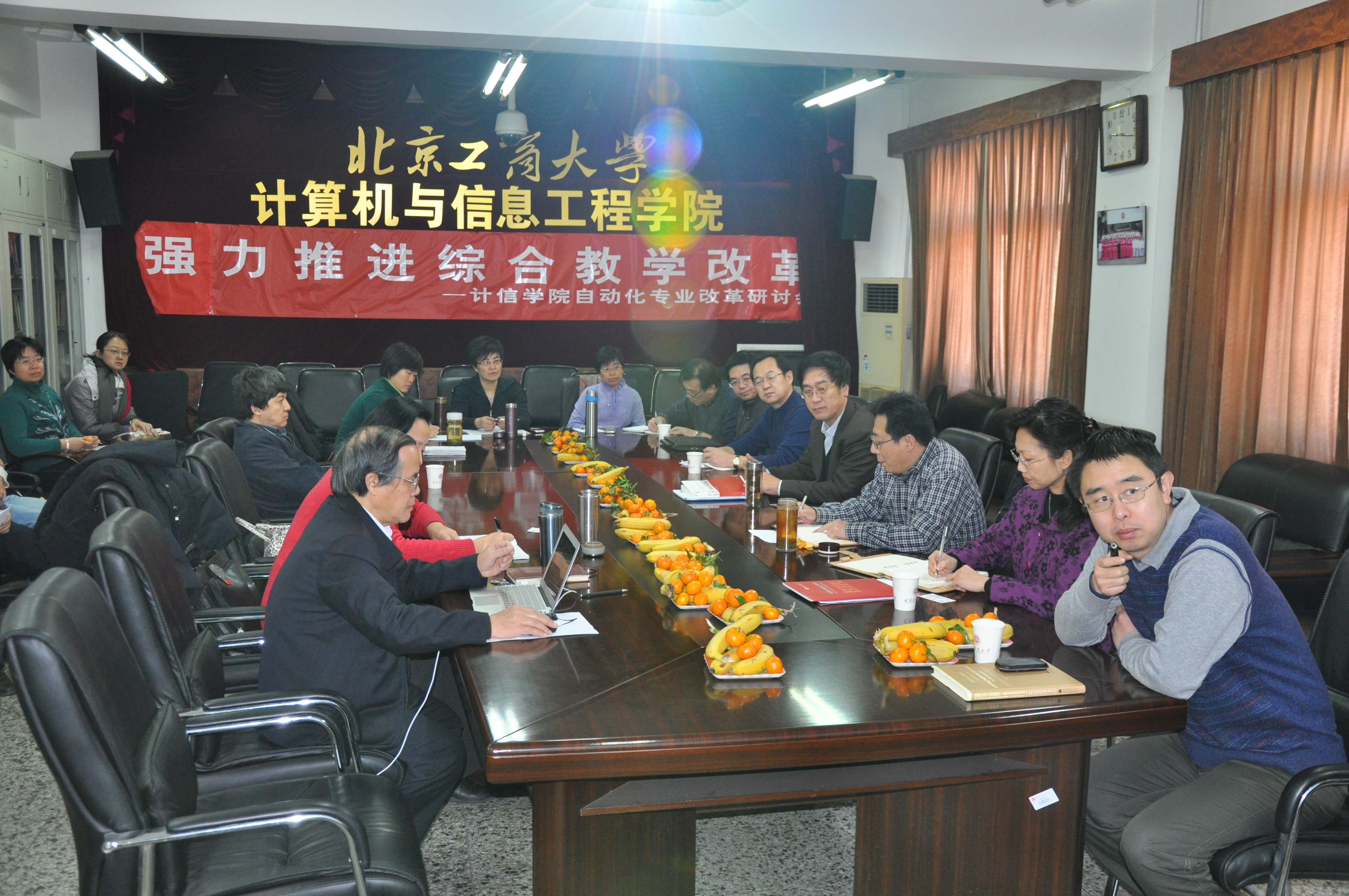 12月17日下午至18日下午,計算機與信息工程學院在阜成路校區召開為期1天半的“強力推進綜合教學改革——自動化專業綜合教學改革研討會”。李朝鮮副校長、方德英副校長及教務處張曉堂處長參加了會議并發表講話。會議由計信學院劉載文院長、姜同強副院長及自動化系薛紅主任主持。計信學院綜合教學改革領導小組全體成員、自動化專業全體老師、學院各系主任及《自動化專業深度課程改革》項目的參與老師等參加了此次研討會。