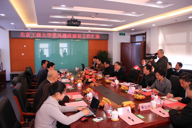 首先,黨委書記孫堯東代表學校黨委歡迎檢查組對我校落實黨風廉政建設責任制情況進行檢查。孫書記從四個方面匯報了學校落實黨風廉政建設責任制、推進懲防體系建設任務完成情況。一是狠抓落實,扎實推進黨風廉政建設工作;二是堅持從嚴,提高黨風廉政建設成效;三是勇于創新,提高黨風廉政建設科學化水平;四是需進一步加強的工作。孫書記指出,學校黨委認真貫徹落實中央、北京市黨風廉政建設工作要求,深入抓好責任制落實,積極推進黨風廉政建設和反腐敗各項工作,懲治和預防腐敗體系基本確立,黨員干部隊伍積極向上,學校改革和事業發展穩步推進。特別是在良鄉一期工程建設中實施“陽光工程”,在大學生中開展“廉潔文化進校園”活動等方面取得成績。近兩年,在深入推進黨風廉政建設責任制落實、嚴格執行各項規章制度和創新黨風廉政建設工作手段方面狠下功夫,學校黨風廉政建設和反腐敗工作取得了新進展,開創了新局面。
