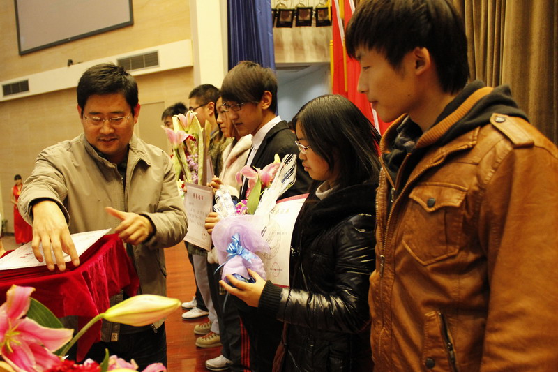 大會伊始,校健美操大賽一等獎作品“經(jīng)舞門”展現(xiàn)了經(jīng)院英才的風采。學生工作視頻集錦使與會師生共同重溫了犇騰經(jīng)院過去一年中的難忘瞬間。馬韜光致開幕詞,總結(jié)了經(jīng)濟學院在黨建工作、學風建設、班級宿舍建設等各項學生工作和活動中的所取得的優(yōu)異成績,肯定了教授論壇、金融投資大賽、博學精英知識挑戰(zhàn)賽、黨員宿舍等品牌活動的舉辦成效。與會領導和老師分別宣讀了2010-2011學年市級、校級先進集體和優(yōu)秀個人,突出貢獻團隊及個人,各級獎學金的獲得者名單并致頒獎詞,共頒發(fā)先進個人630人,先進集體20個。國家獎學金獲得者賈雨亭同學發(fā)表獲獎感言。