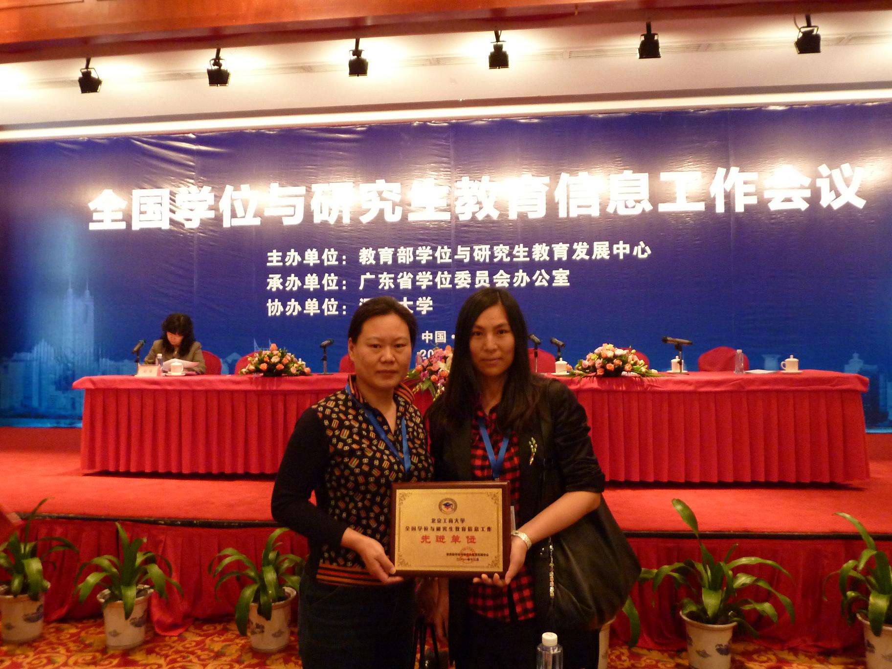 12月20日,教育部學位與研究生教育發展中心在深圳舉行了全國學位與研究生教育信息工作表彰會,我校喜獲“全國學位與研究生教育信息工作先進單位”的榮譽稱號。