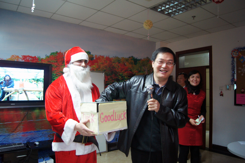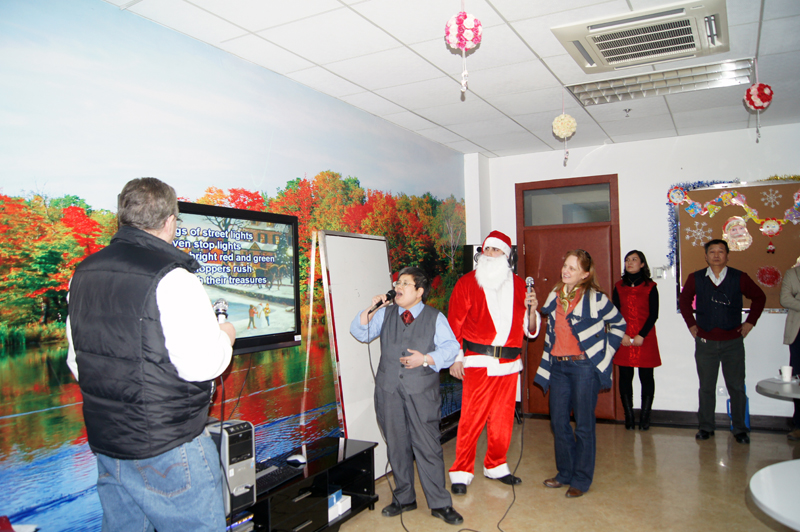 當主持人宣布,聯歡會第一個節目就是合唱《沒有共產黨就沒有新中國》時,張德玉同志、李朝鮮同志和老師們一起高唱紅歌,重溫慶祝建黨90周年歌詠的比賽盛況。之后,老師們演出了豐富多彩、形式多樣的文藝節目。外籍教師Shelley、Jon、Michael、Throne也載歌載舞、興高采烈地參加了聯歡活動。整個會場氣氛熱烈,高潮迭起。老師們既放飛了心情,又增進了友誼和團結。最后,大家同唱《難忘今宵》,在歌聲中聯歡會進入尾聲。