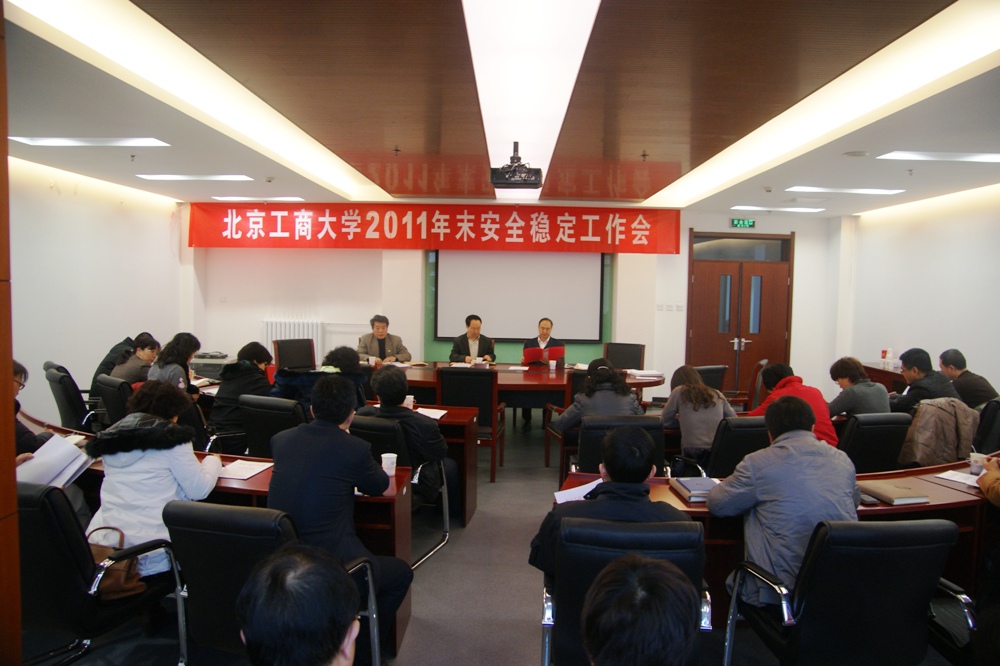 12月28日學校在阜成路校區召開2011年末安全穩定工作會。黨委副書記盧思鋒主持會議并講話,呼文亮副校長布置了元旦春節期間學校安全穩定工作的任務。各單位安全穩定的第一責任人參加會議。