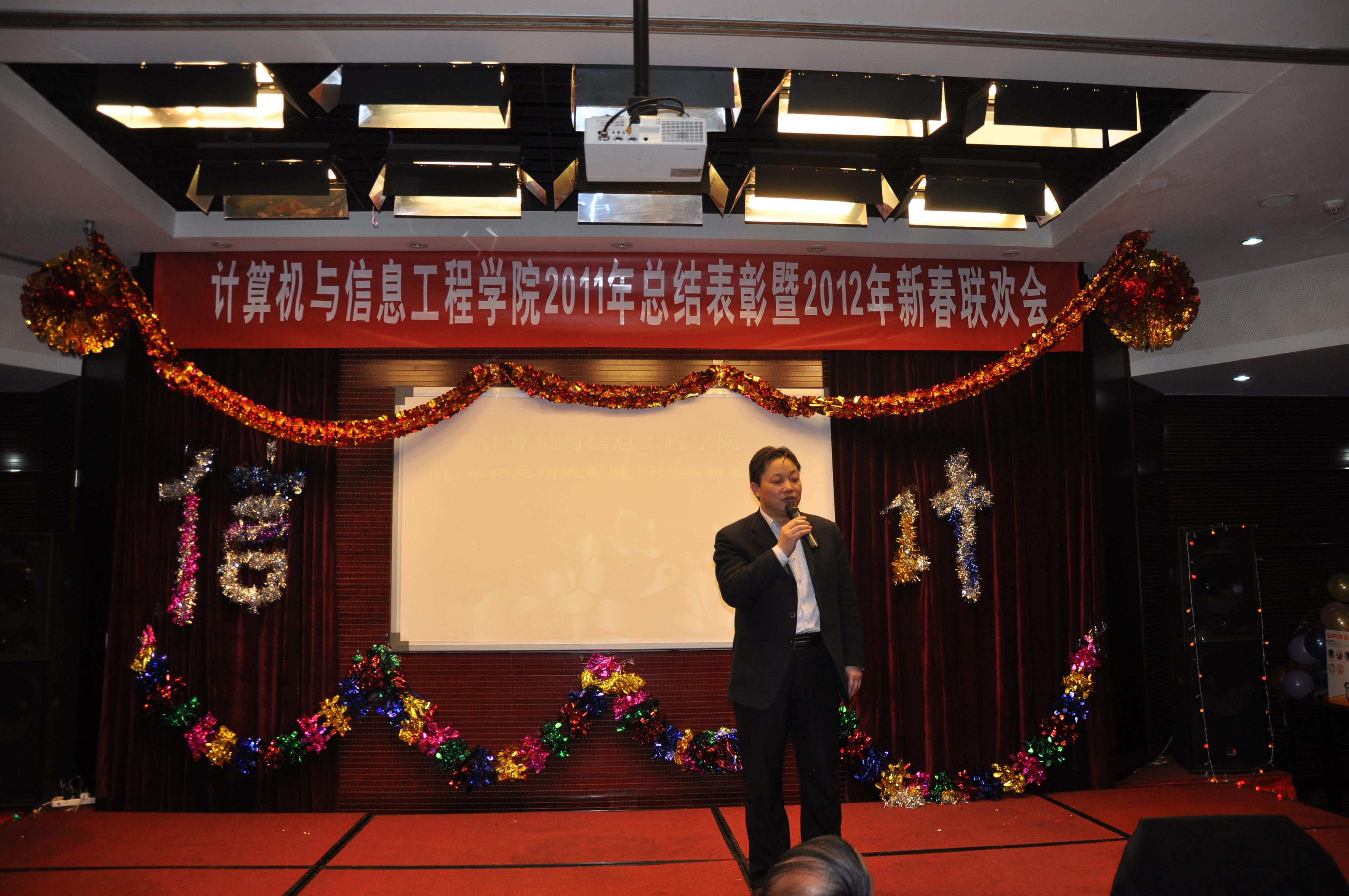 2011年12月30日晚,計信學院全體教職工歡聚一堂,舉行2011年總結表彰會暨新年聯歡會。副校長方德英、校工會主席韓寶龍、網絡中心主任劉翠玲、研究生處副處長莫倩、科技處副處長王小藝應邀出席了表彰聯歡會。