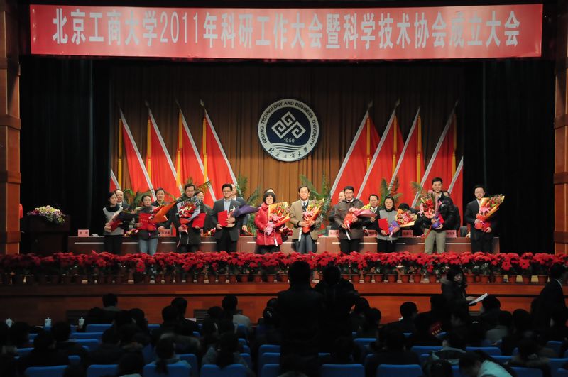 2011年是中國共產黨成立90周年,學校組織開展了豐富多彩的紀念活動。學校于5月31日和6月15日分別舉辦了“五月的鮮花、特殊的黨日”千人大合唱和教職工大合唱。學校各單位認真組織黨史知識學習,6月24日,學校舉辦了紀念建黨90周年黨史知識競賽。各黨總支、直屬黨支部開展了豐富多彩的黨日活動。7月1日,學校隆重召開慶祝中國共產黨成立九十周年大會,表彰了學校先進基層黨組織、共產黨員標兵、優秀共產黨員和優秀黨務工作者;播放了學校編輯和拍攝的視頻《光輝歷程》和《時代先鋒》。學校繼續深入開展創先爭優活動,開展了教工黨支部書記培訓、“最佳黨日活動”評選、優秀基層黨建工作創新項目評選等等。學校獲得“北京市紀念建黨90周年宣傳工作先進集體”和“北京高校黨建研究會2008-2010年度學會工作先進單位”榮譽稱號。 《北京工商大學“十二五”事業發展規劃》編制工作,歷時九個月,經過廣泛調研、全員參與、反復推敲、數易其稿,其主規劃及五個子規劃(討論稿)于2011年4月提交第三屆教職工代表大會暨工會會員代表大會討論。學校于2011年5月頒布了《北京工商大學十二五事業發展規劃》及若干子規劃,為學校未來五年發展描繪了宏偉藍圖。 ■啟動本科教學綜合改革和評選教學優秀教師 推進教學質量工程建設取得新成效 11月25日,學校召開了2011年度本科教學綜合改革會議。孫堯東書記和譚向勇校長分別作了重要講話,李朝鮮副校長作以“強力推進本科教學綜合改革、全面提高人才培養質量”為主題的報告,四位專家分別作專題報告。與會的各級領導和教師代表、教學督導專家一致認為,在學校進入內涵發展的歷史階段進行本科教學綜合改革,對提升我校教學水平和人才培養質量有重大意義;本科教學綜合改革是系統工程,所有教師要充分認識教學綜合改革的意義,各教學單位要理清思路,制定方案,找準改革突破點,強力推進教育教學改革。 為鼓勵在教學改革和教書育人工作中做出突出貢獻的專任教師,培養一批教學骨干,進一步推動我校教育教學改革,提高人才培養質量,學校開展2011年教學優秀獎評選系列工作。經過學院推薦、教務處審核、學院評選、分學科遴選、教學展示評選等環節,共評選出10名教師獲得教學優秀一等獎、30名教師獲得教學優秀二等獎,有力地促進了教師對教學工作的重視,調動了廣大教師的工作積極性。 ■科研項目和科研經費持續增長 科技工作再上新臺階 2011年3月,“原味濃縮肉湯生產技術”榮獲教育部科技進步一等獎。2011年4月,我校三項目獲得2009年北京市科學技術獎,其中二等獎1項,三等獎2項。2011年我校科研項目申報立項和獲批數量比去年有了新增加:獲批國家社科基金8項,其中重點項目1項;獲批國家自然科學基金22項,教育部人文社會科學研究一般項目13項,北京市哲學社會科學規劃項目9項,北京市自然科學基金11項,北京市教委重點項目4項,獲批總量比去年增加39.2%。2011年底我校科研總經費超過1.3億元,其中課題經費達到5500萬元,科研經費比去年增長19.8%。 學校還積極主辦或承辦首都現代服務業發展論壇、中國商業經濟學會第七次會議、第23屆亞太地區國際會計專題研討會等學術活動和各種學術報告活動,學術氛圍日趨濃厚,學校科技工作再上新臺階。