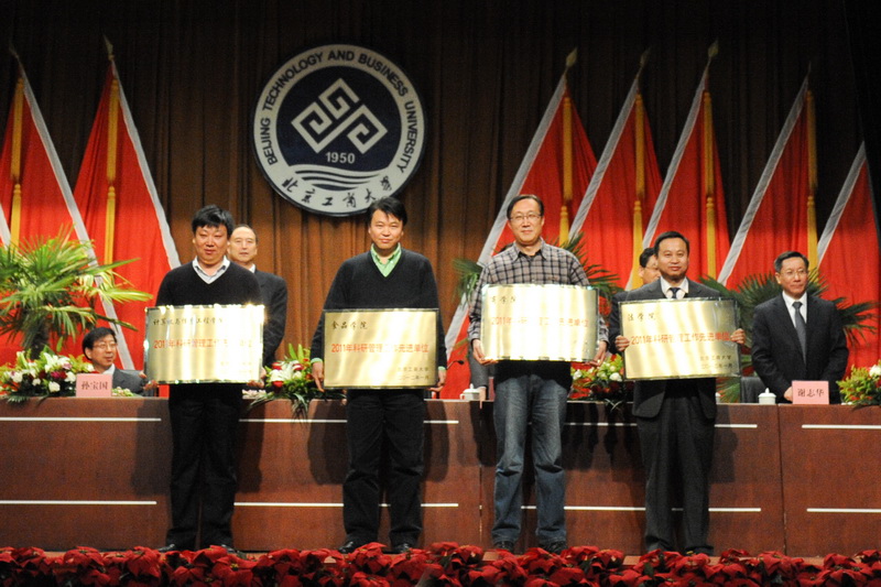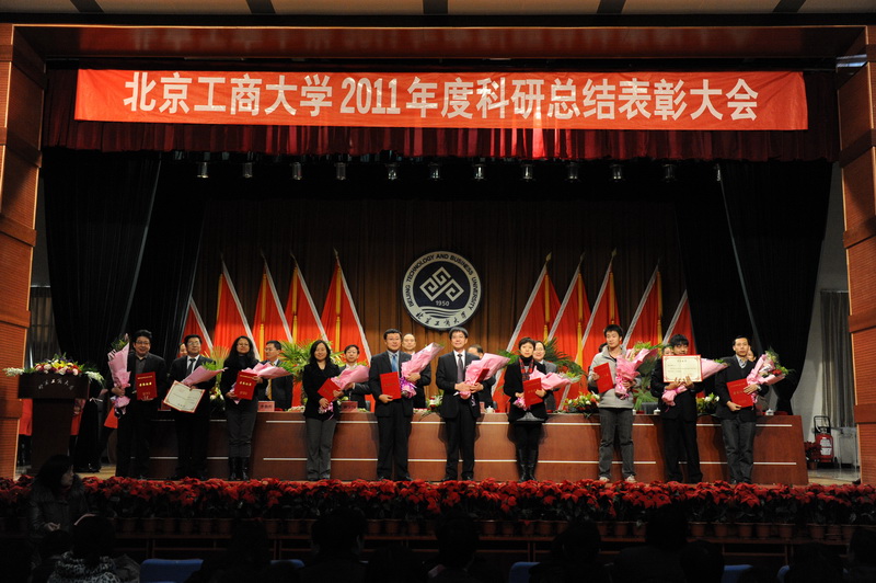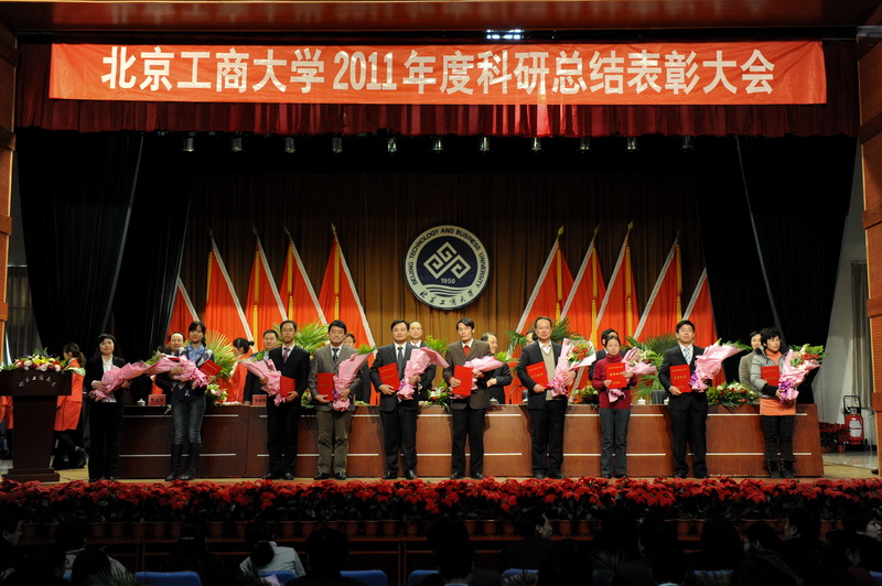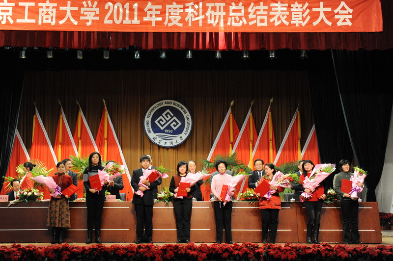 孫寶國副校長宣讀了省部級獎勵、國家級項目立項、省部級項目立項和北京工商大學(xué)2011年科學(xué)研究優(yōu)秀成果獎名單獲獎單位及人員名單,李朝鮮副校長宣讀了個人科研排名前10名、科研單位完成工作量總分排名前3名、科研管理先進(jìn)單位、科研管理先進(jìn)個人、科協(xié)工作先進(jìn)個人的名單(名單另發(fā))。校領(lǐng)導(dǎo)為獲獎單位代表和個人頒發(fā)了榮譽(yù)證書和獎牌。