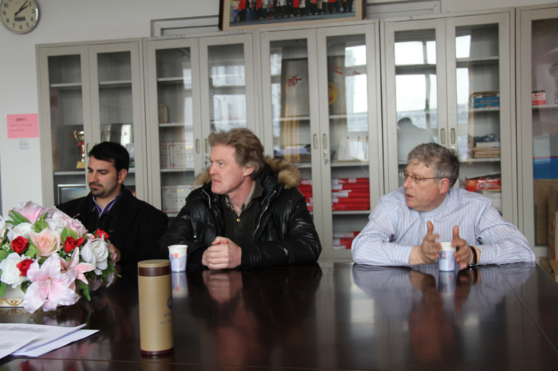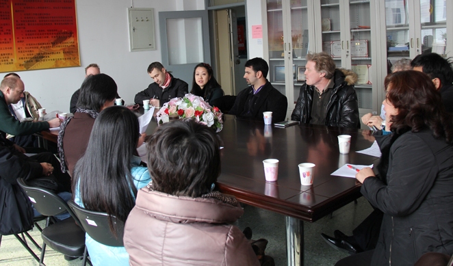 劉紅艷對新聘任外籍專家和外籍教師的到來表示熱烈的歡迎,為外籍專家和教師介紹學(xué)院領(lǐng)導(dǎo)、系部主任及教秘老師,通報(bào)了寒假期間外教招聘、手續(xù)辦理及安排外籍教師入住、注意安全等情況。隨后,新老外教進(jìn)行了自我介紹。張衛(wèi)晴對外教新學(xué)期課程安排進(jìn)行了說明,楊懷恩和各系部主任就教學(xué)安排與外教進(jìn)行了深度交流。