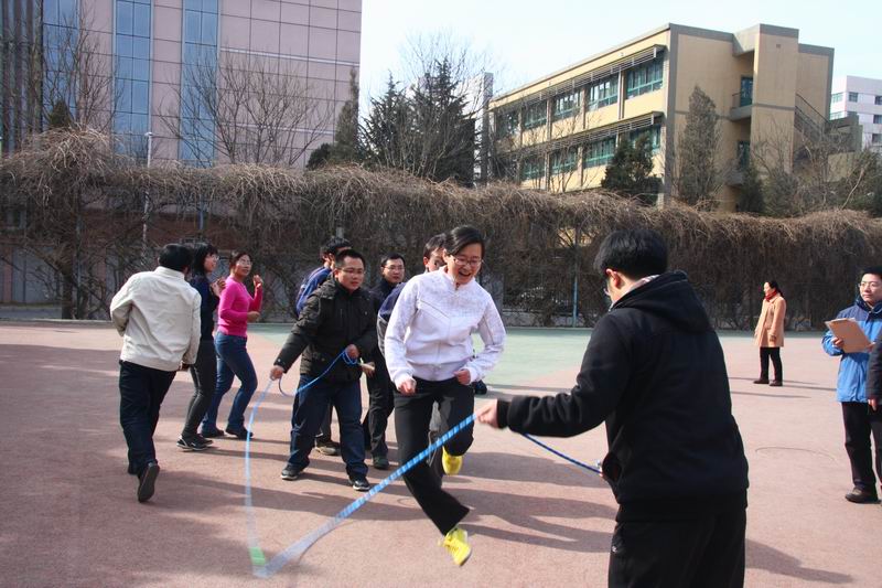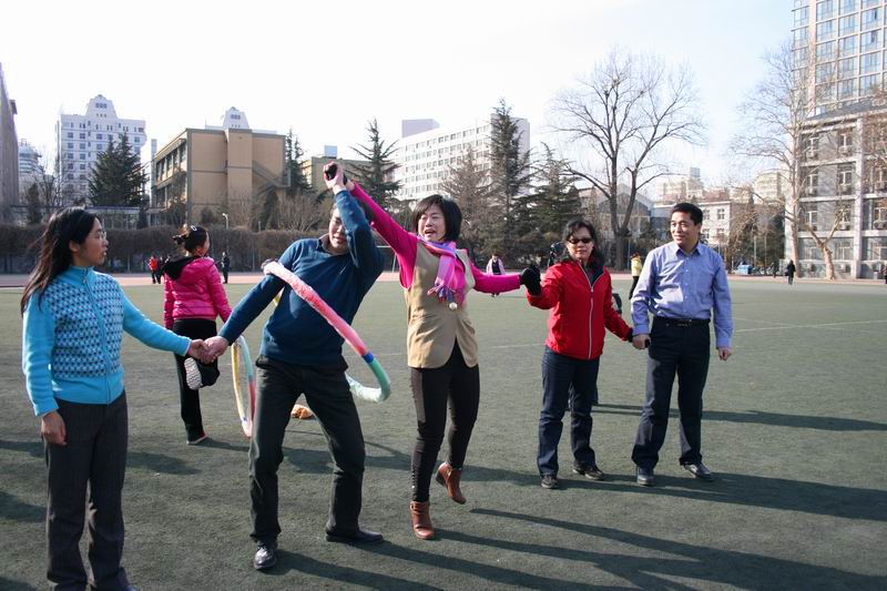 8日下午,東區(qū)操場(chǎng)一片歡聲笑語,慶“三八”教職工趣味運(yùn)動(dòng)選拔賽正在這里舉行。本次趣味運(yùn)動(dòng)會(huì)設(shè)置了一個(gè)個(gè)人項(xiàng)目、三個(gè)集體項(xiàng)目,男女教工均可參加,獲勝者除了能夠獲得獎(jiǎng)品外,還有機(jī)會(huì)代表學(xué)校參加首都教育系統(tǒng)教職工運(yùn)動(dòng)會(huì)。隨著比賽的進(jìn)行,賽場(chǎng)上的氣氛越來越濃烈。三磚渡河,既需要技巧,又考驗(yàn)體力和協(xié)調(diào)性;呼啦圈接力作為一個(gè)新項(xiàng)目,要求隊(duì)員依次套過呼啦圈,時(shí)間最短的隊(duì)伍獲勝,隊(duì)員們邊比賽邊總結(jié)經(jīng)驗(yàn);踢毽和跳繩作為傳統(tǒng)項(xiàng)目,選手們不時(shí)做出一些高難度動(dòng)作,不凡的身手引來陣陣掌聲。據(jù)統(tǒng)計(jì),參加本次趣味運(yùn)動(dòng)會(huì)的教職工近三百人。