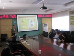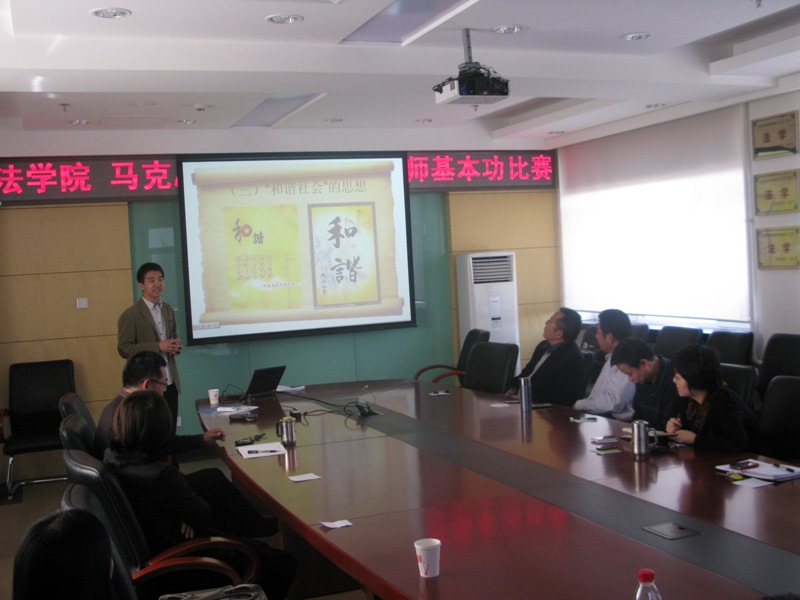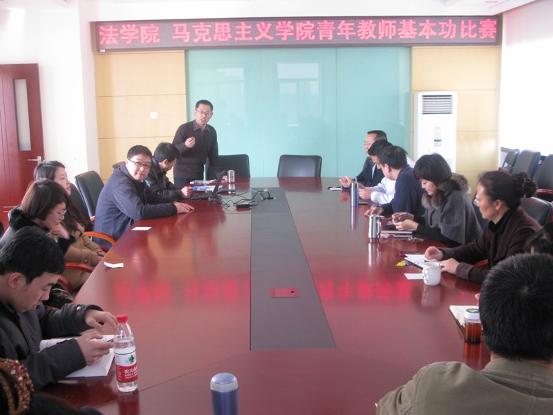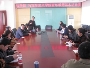 為加強青年教師隊伍建設,培養和展示青年教師的業務能力,3月14日下午,法(馬)學院在阜成路校區舉行了青年教師教學基本功比賽。李仁玉院長等學院領導和各教研室主任及分工會委員組成了評審委員會。杜凡、侯雪梅、李金、張宏偉、鄒亞莎、郭紋靜、顏蘇七位青年教師作為選手參加了比賽。比賽由副院長、院工會主席劉東超教授主持。