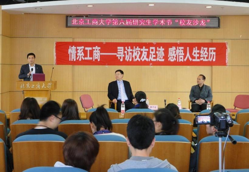 4月11日下午,以“情系工商—尋訪校友足跡,感悟人生經歷”為主題的研究生“校友沙龍”首場活動在阜成路校區舉行。此次活動由校友會研究生分會主辦,研究生職業規劃研究中心承辦,在校友會的大力支持下,黃子龍和孫飛兩位校友應邀到我校參加了活動。