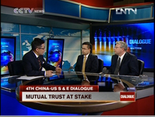 5月3日,受央視英語新聞?lì)l道Dialogue欄目制片人兼主播楊銳邀請(qǐng),外國(guó)語學(xué)院外籍專家Thomas Bork教授做客中央電視臺(tái)英語新聞?lì)l道“對(duì)話”欄目,與中國(guó)國(guó)際問題研究所副所長(zhǎng)、《國(guó)際問題研究》雜志主編阮宗澤研究員及央視英語新聞?lì)l道Dialogue欄目制片人兼主播楊銳就第四輪中美戰(zhàn)略與經(jīng)濟(jì)對(duì)話若干熱點(diǎn)問題進(jìn)行對(duì)話,發(fā)表見解。