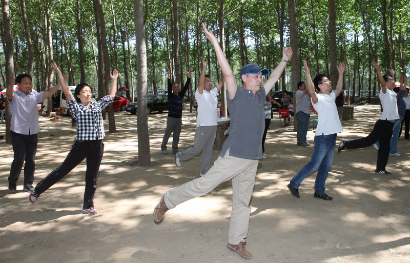 為響應(yīng)“陽(yáng)光體育,快樂(lè)工作”的號(hào)召,積極準(zhǔn)備學(xué)校開展的教工千人廣播體操活動(dòng),5月5日,理學(xué)院工會(huì)組織全院教職工到順義漢石橋濕地公園開展工會(huì)活動(dòng)。活動(dòng)以各系展示第九套廣播體操排練成果為主題,數(shù)學(xué)系、物理系、化學(xué)系、生物系教師分為四個(gè)方隊(duì),逐一進(jìn)行了表演。通過(guò)平時(shí)的努力練習(xí),大家在精神面貌、動(dòng)作的準(zhǔn)確度和隊(duì)形的整齊度等方面都有了很大的進(jìn)步。院長(zhǎng)曹顯兵、黨總支書記祝鈞等5人組成的評(píng)委,根據(jù)各系的排練情況進(jìn)行了評(píng)比和頒獎(jiǎng),鼓勵(lì)大家在學(xué)校的廣播操比賽中再創(chuàng)佳績(jī)。