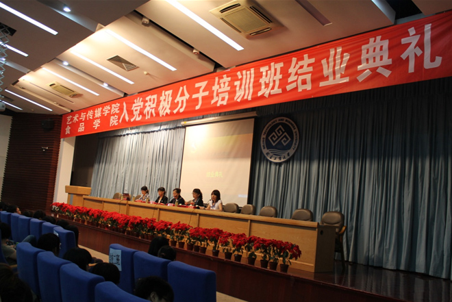 5月11日,在雄壯的國(guó)歌聲中,藝術(shù)與傳媒學(xué)院、食品學(xué)院入黨積極分子培訓(xùn)班結(jié)業(yè)典禮在B報(bào)告廳舉行。黨校辦公室主任李躍萍、藝術(shù)與傳媒學(xué)院黨總支書記秦巍、食品學(xué)院黨總支書記何猛等出席了結(jié)業(yè)典禮。