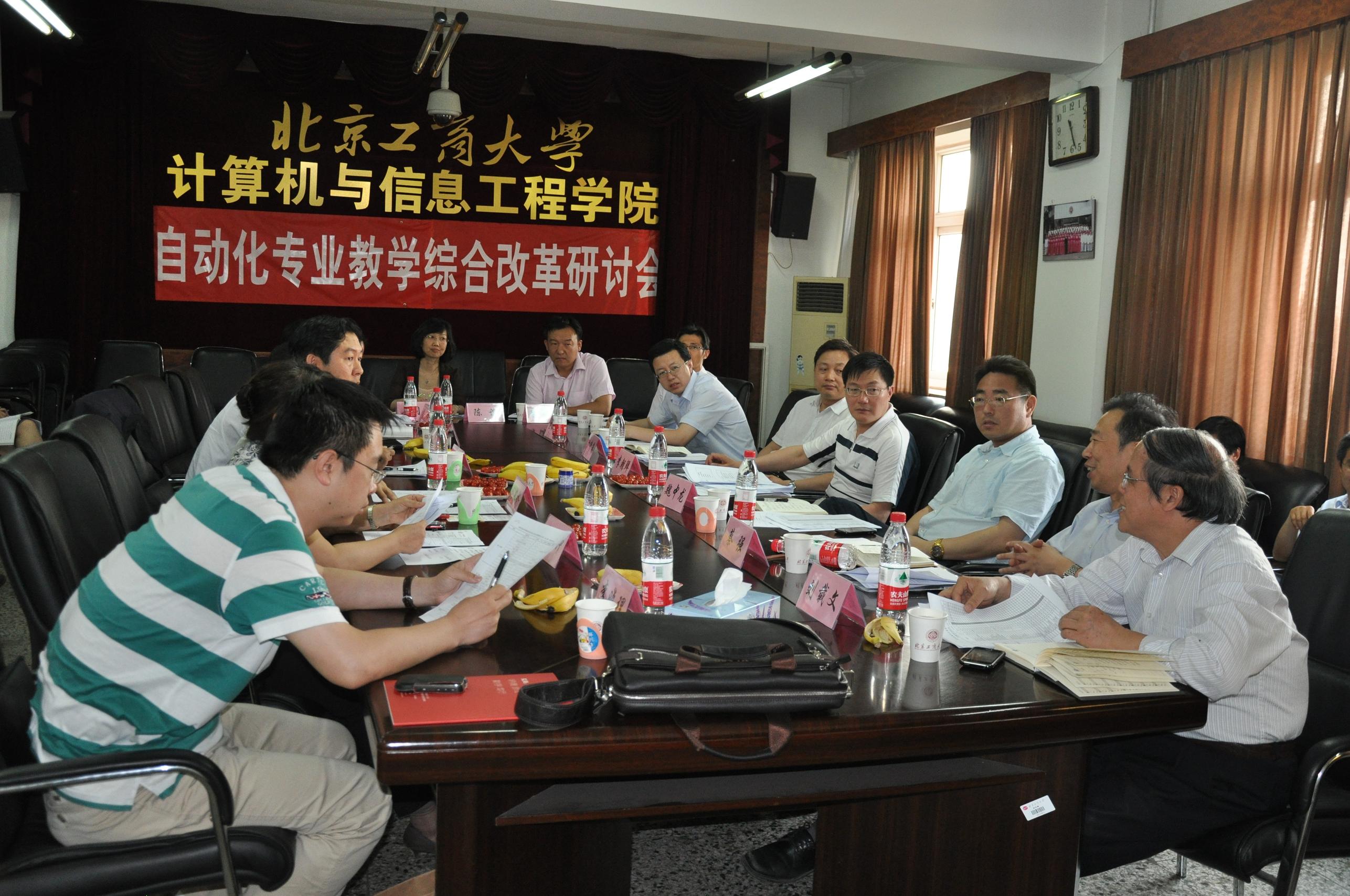 5月17日下午,計算機與信息工程學院召開自動化專業本科教學綜合改革研討會。學校副校長李朝鮮、方德英、教務處長處魏中龍、校辦主任王小藝、教務處副處長張偉、李海生應邀出席了會議。會議邀請了清華大學自動化系副主任張長水教授、北京科技大學高效軋制國家工程研究中心副主任王京教授、北京科技大學自動化學院控制科學與工程系主任李曉理教授、北京理工大學自動化學院廖曉鐘教授以及北京交通大學經濟管理學院趙啟蘭教授。計算機與信息工程黨總支書記陳誼、劉載文教授、副院長姜同強、學院教學工作委員會全體成員以及自動化專業全體老師參加了此次研討會,會議由蔡強院長主持。