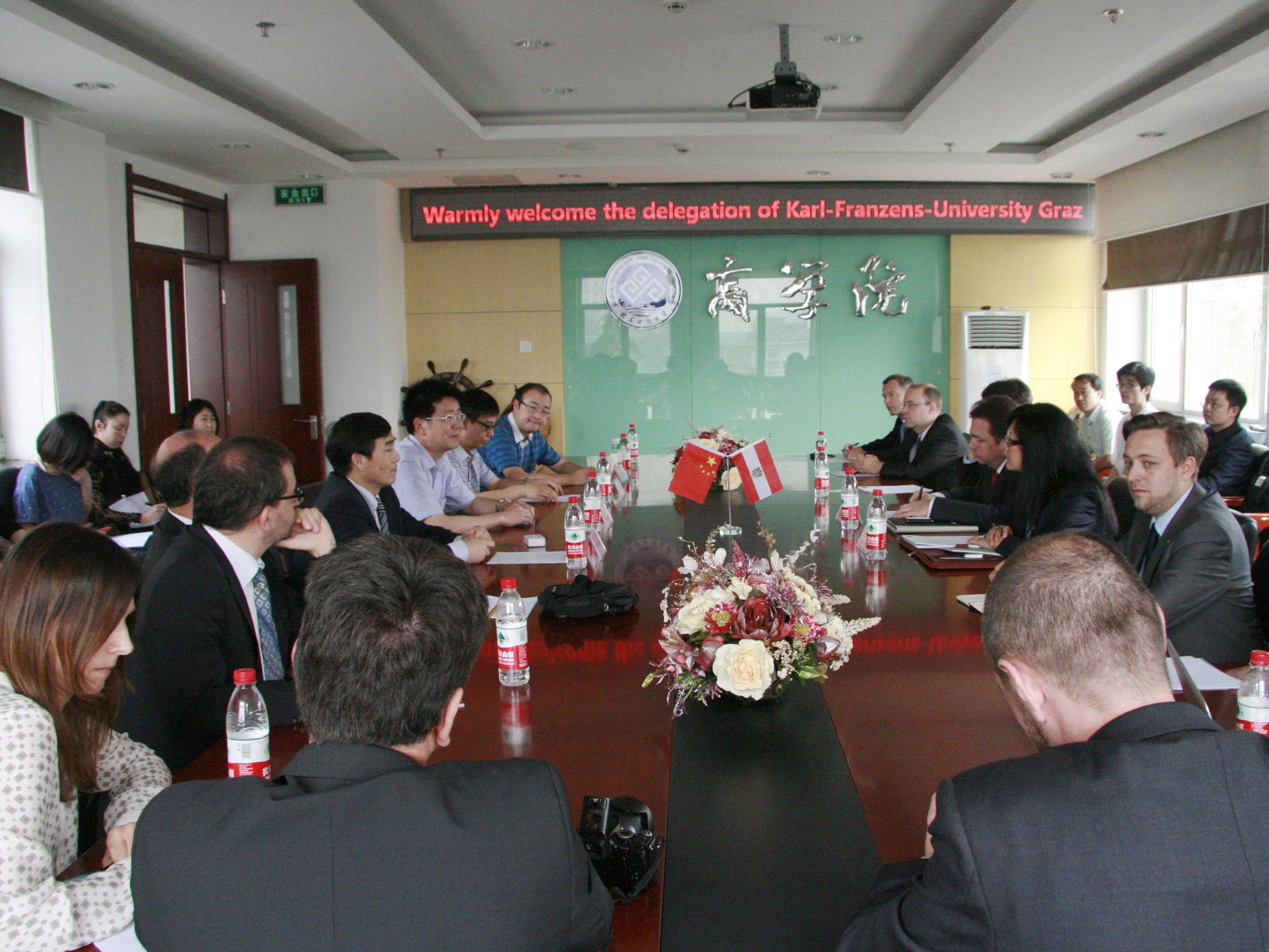 歡迎儀式上,國際交流與合作處處長何明珂教授致歡迎辭,并介紹了我校在開展國際交流與合作方面的基本情況和MBA教育在我校學科建設中的地位和作用。商學院院長王國順教授介紹了我校MBA教育項目發展情況和商學院的情況。格拉茲大學社會與經濟學院院長Thomas Foscht教授介紹了格拉茲大學基本情況和該校MBA對外交流與合作情況。雙方代表均期待有更深入的合作。