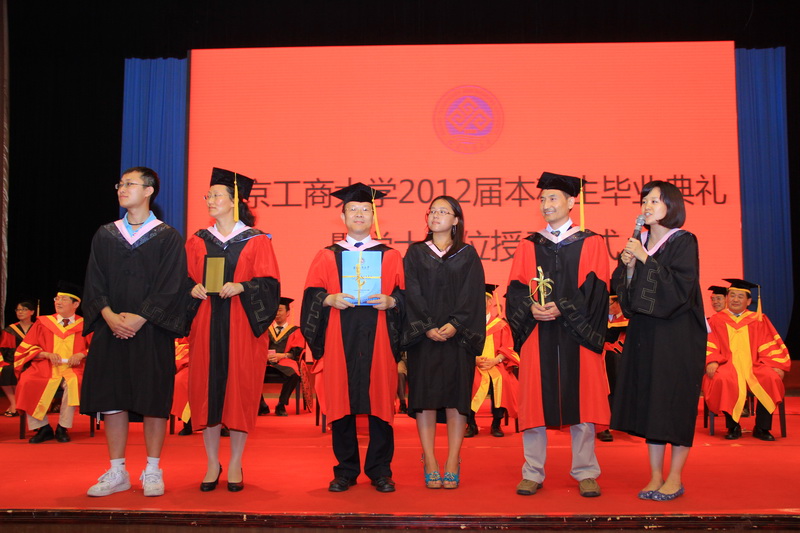 李朝鮮副校長宣讀了《北京工商大學關于2012屆本科生畢業暨學士學位授予的決定》,2680名本科畢業生獲得學士學位。孫寶國副校長為畢業生代表頒發了畢業證書。隨后張德玉副書記宣讀了《關于表彰2012屆優秀畢業生的決定》,288人榮獲北京工商大學優秀畢業生稱號,144人榮獲北京市優秀畢業生稱號。黨委書記孫堯東為優秀畢業生代表頒發了榮譽證書。